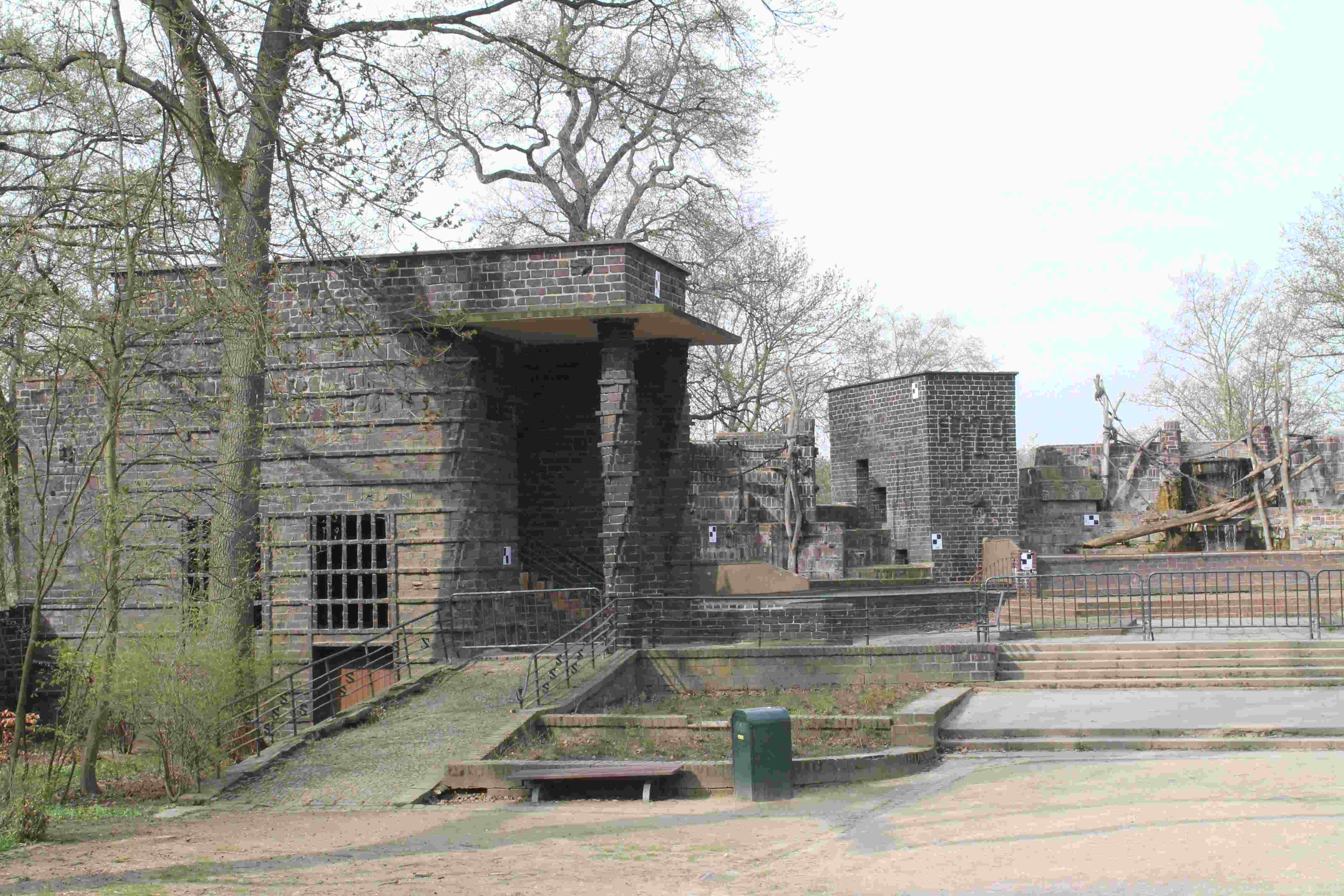 Die historische Bärenburg kann in ihren Abmessungen nicht für die moderne Tierhaltung verwendet werden. Im Masterplan ist ein Abenteuerspielplatz auf dem Gelände und im Gebäude der Bärenburg vorgesehen. Das Bauwerk in historischer Stahlbeton-/ Klinkerbauweise ist somit statisch für die neuen Beanspruchungen und das überarbeitete Raumkonzept zu ertüchtigen. Fast die gesamten Stahlbetonoberflächen sind nach fast 100 Jahren Nutzung verschlissen und im Rahmen einer Betonsanierung instand zusetzen.